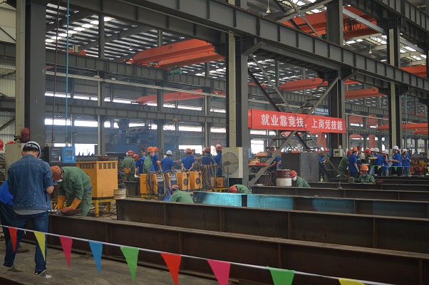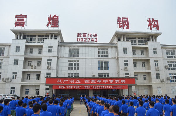 為迎接“五一”國際勞動節,充分展示廣大職工立足本崗、創新創業的風采,進一步掀起職工技術比武和崗位練兵的熱潮。4月28日上午9時,由德安縣總工會主辦、江西省富煌鋼構有限公司承辦的德安縣中國夢・勞動美--“富煌杯”技能競賽在江西富煌正式啟動。德安縣政協副主席、縣總工會主席桂天華,縣總工會副主席魏霞,縣總工會副主席張峰,江西富煌總經理喬東應、常務副總經理吳捷,江西富煌工會主席鉏金春等公司領導班子、裁判員、參賽選手、公司員工共300余人參加此次活動。.jpg)